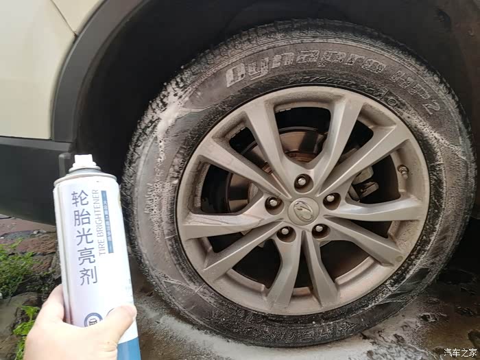 洗车后, 轮胎、黑色装饰罩都喷的光亮剂(轮胎蜡)