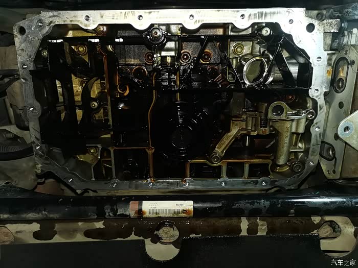 正好趁着拆油底壳,观察一下油泥状态,跑了21w公里,这油底壳厚厚的一层油泥很是唬人,看来无论是抽还是放,残留的油泥都很难自己跑出来