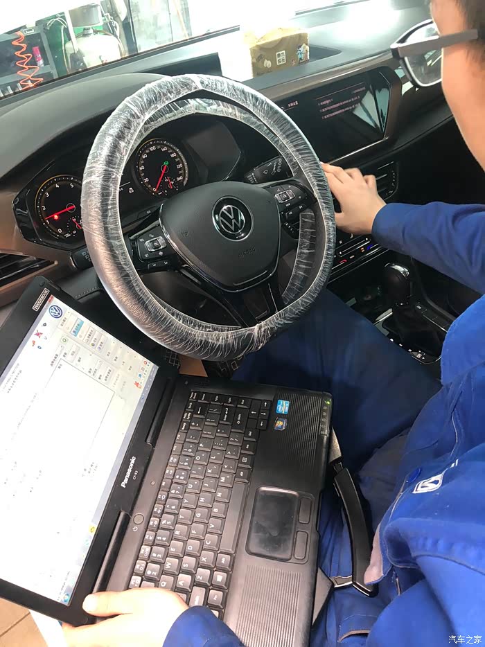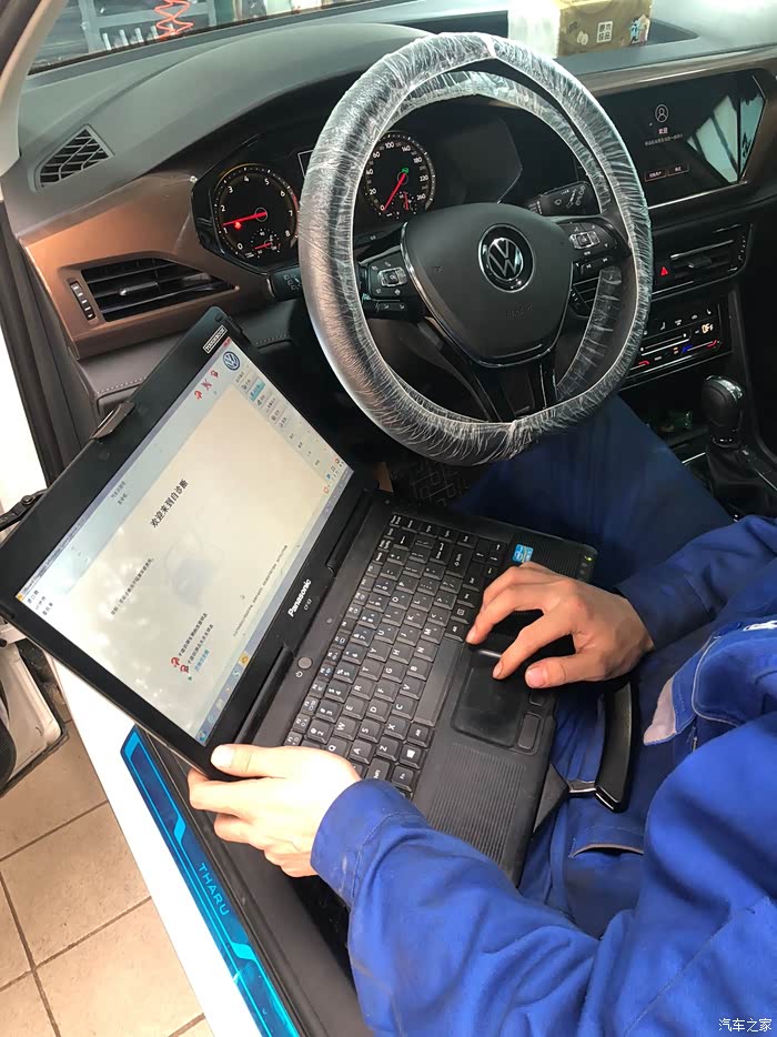 加完机油后,最后用电脑检查各部位情况,看是否有异常。