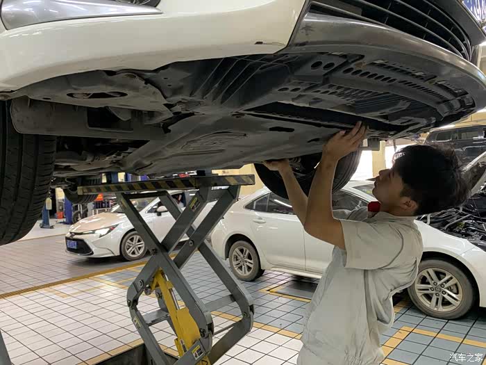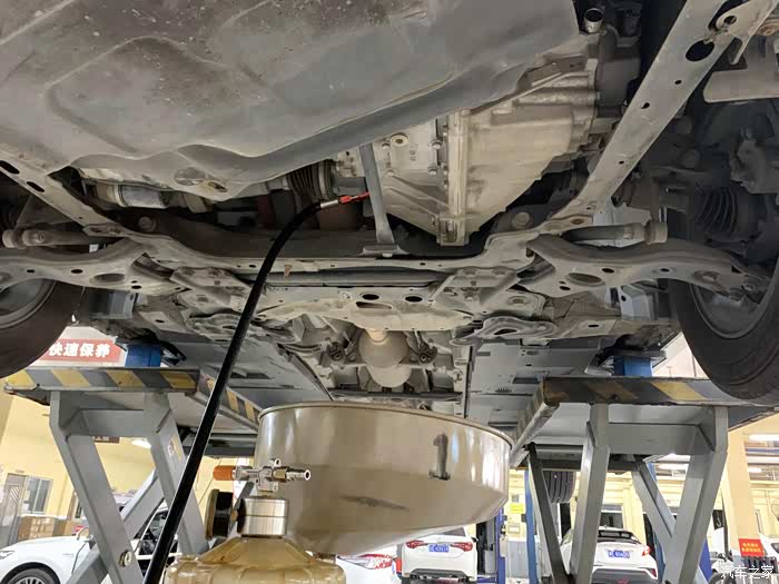 波箱油更换完成,师傅把发动机护板装回去!辛苦了