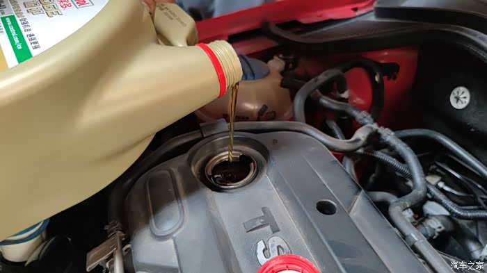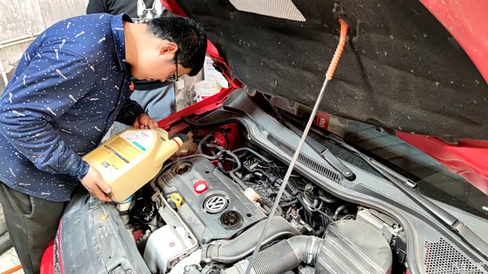 EA111发动机机油口有个挡板,机油流进去速度比较慢,把老板的手都举累了。