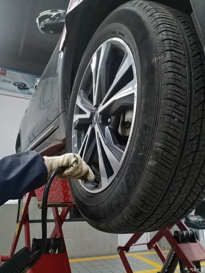 检查胎压,冬季补充到2.5~2.55,夏季2.2~2.3。