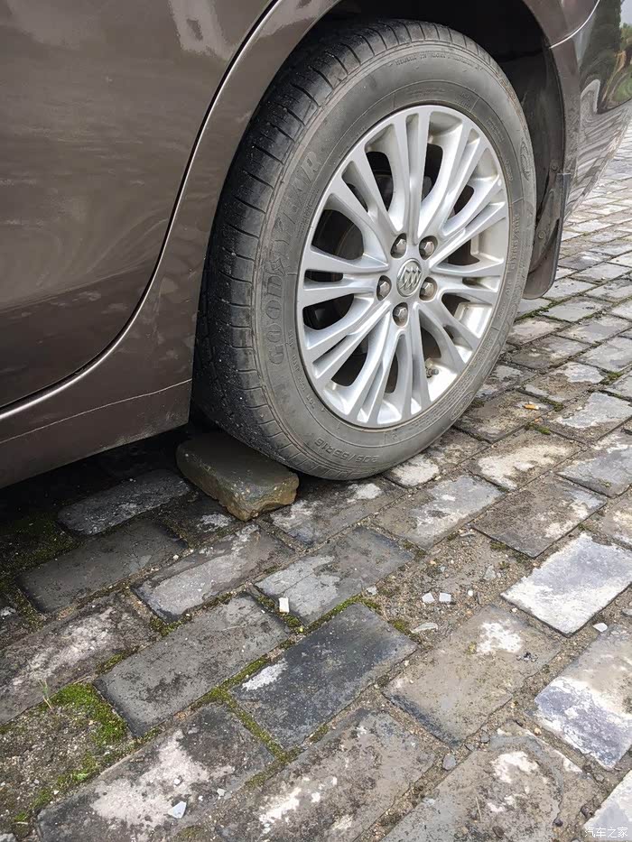记着,重力放油,有落差,人在下面操作,一定要注意安全,拉手刹,同时四个轮子一定要做阻挡,找个砖头挡住。我的英朗使用的固特异安乘轮胎,趁着这次更换机油的时候,再给我的爱车轮胎做个检查