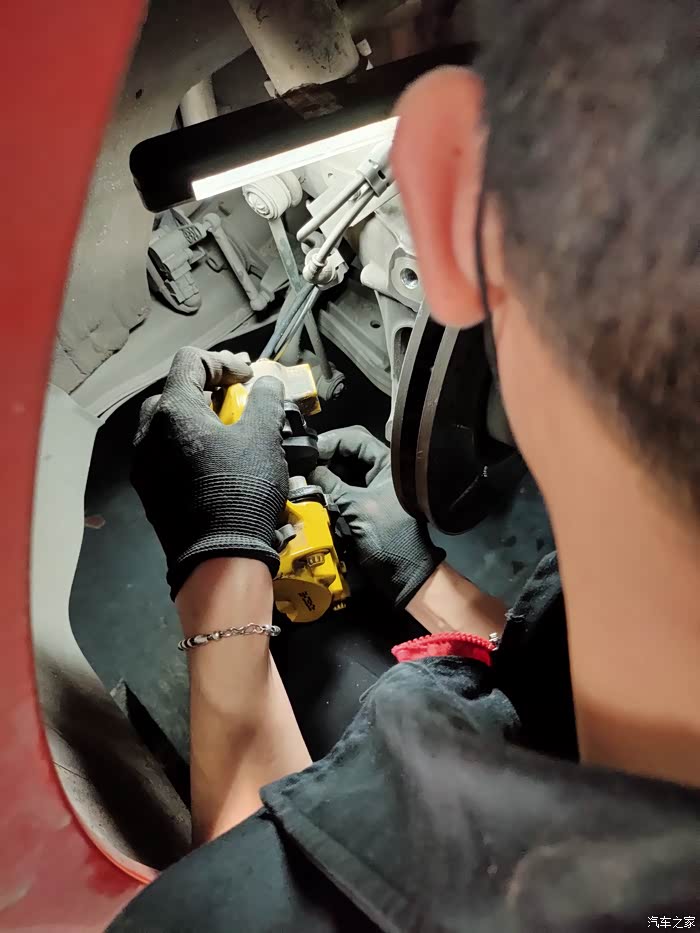 拿灯照清楚,看准螺丝和分泵的位置,以便拆开