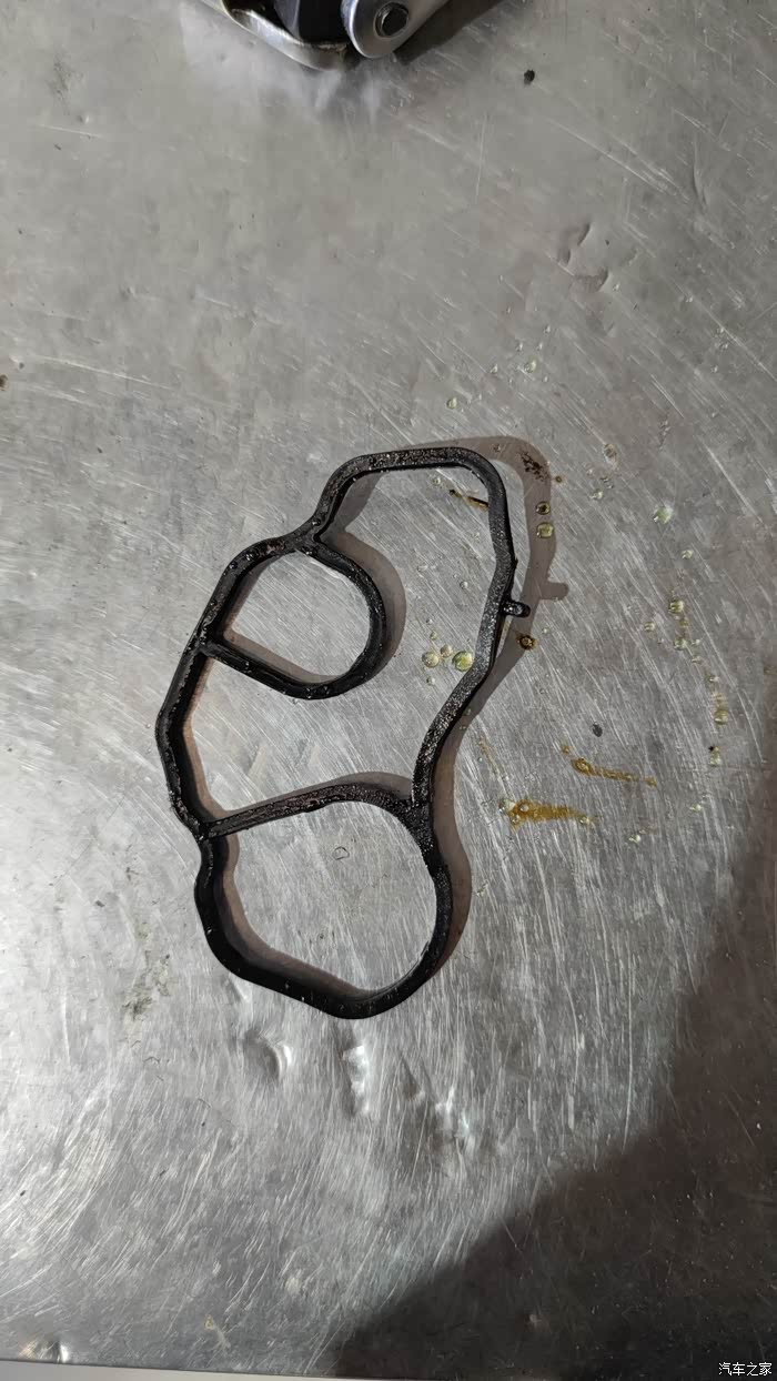 新的橡胶圈上车。老板说是原厂件,看着倒是挺精致的,新的橡胶圈明显很有弹性。换上后技师说可能还会滴一阵子,是因为之前滴的附着在底盘上,化清剂喷不到的地方还有残留,高温后滴完就没有了。
