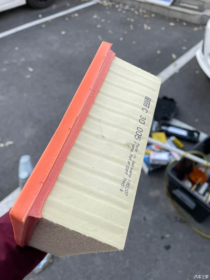 拆下旧的空滤,德国产的,做工比汉格斯特的还好。没舍得扔,简单清理一下又装回去了。