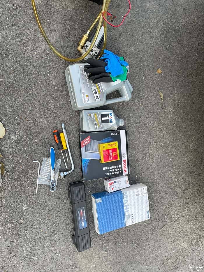 本次用的配件及部分安装工具。马勒的空气滤最后没有用上。