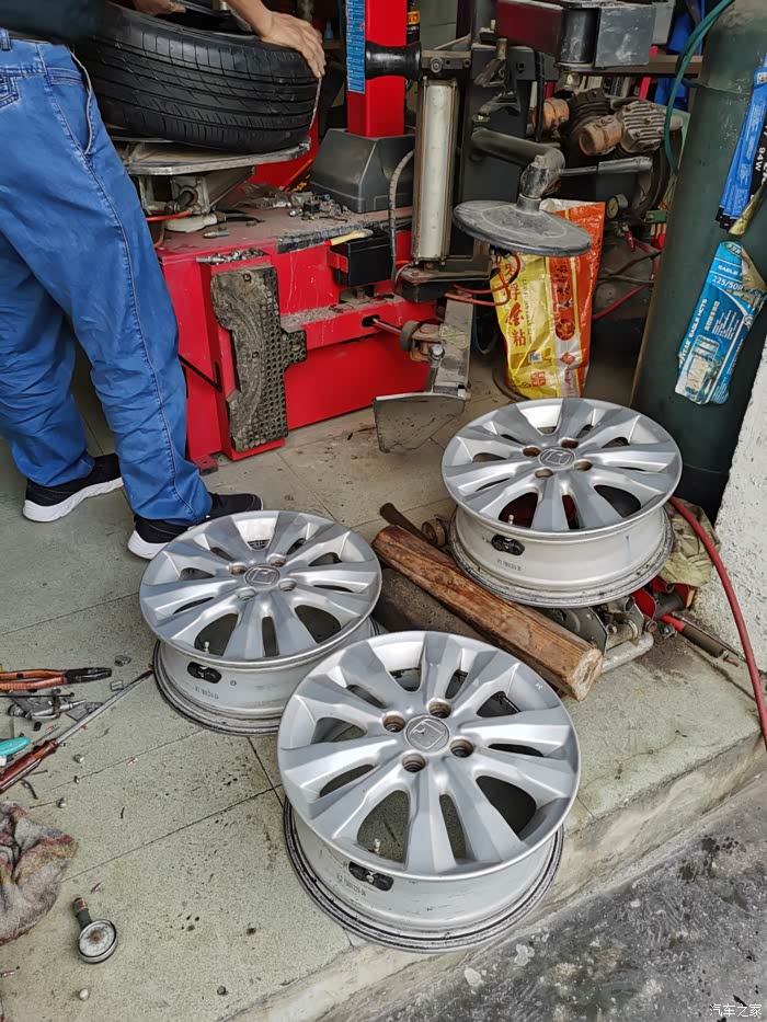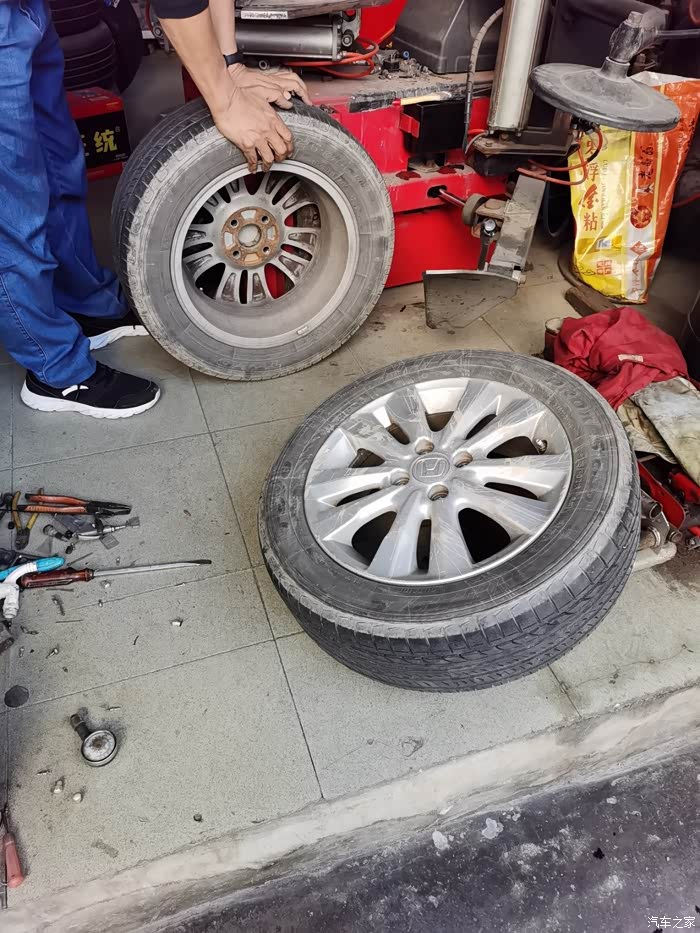 虽然只是换2条轮胎,但是把四条轮胎全部拆出来,轮毂上平衡机检测一下,调2个最好的轮毂来装新轮胎,放前轮。