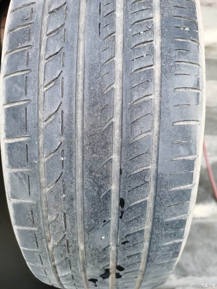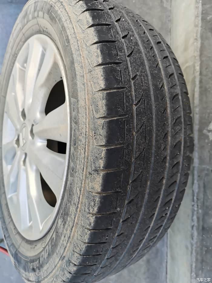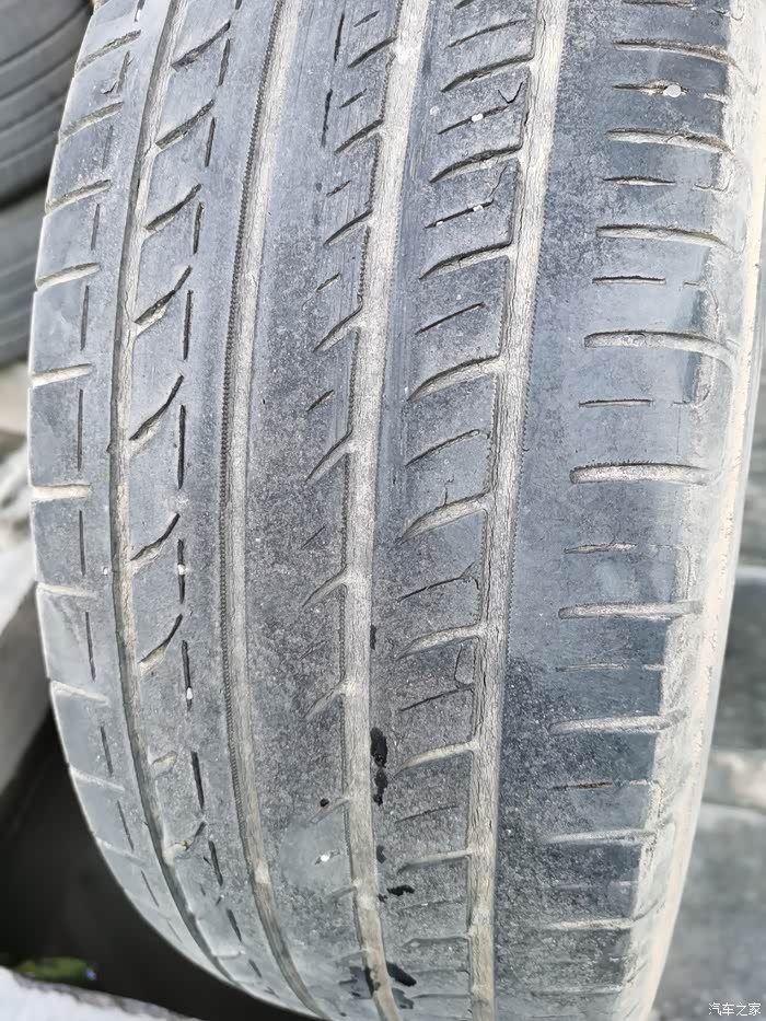 这是旧胎,改牌子上代产品,跑了接近7万公里。花纹浅了,也老化了。