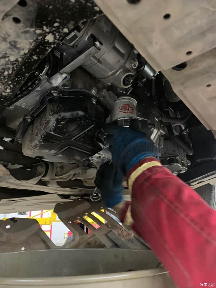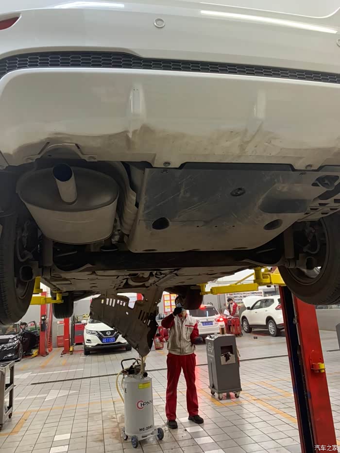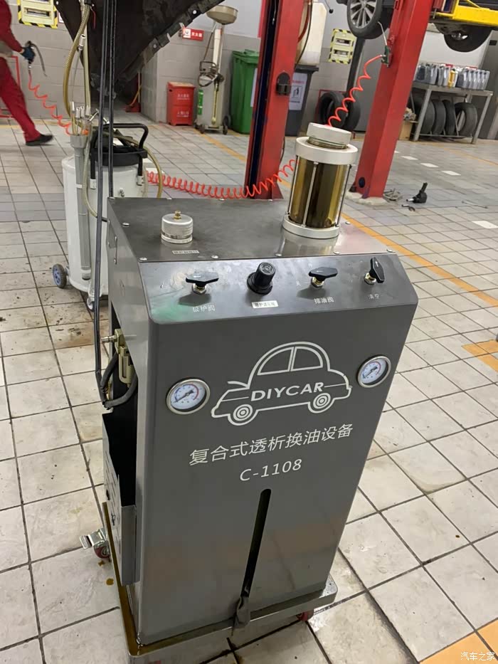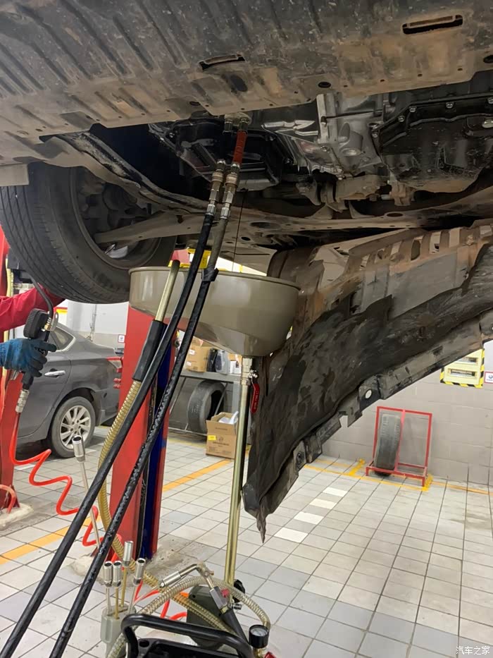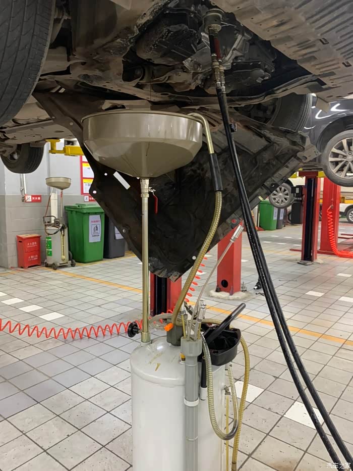上次保养是看着直接用容器接着废弃机油,这次是用上了管子,不太明白,还是术业有专攻。