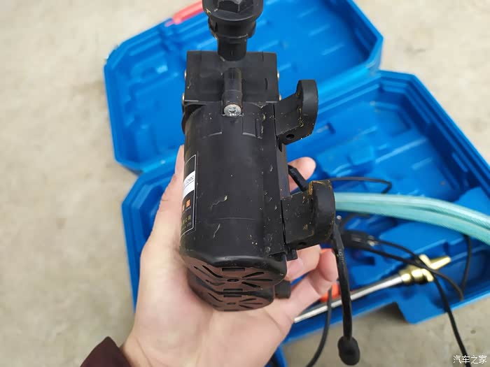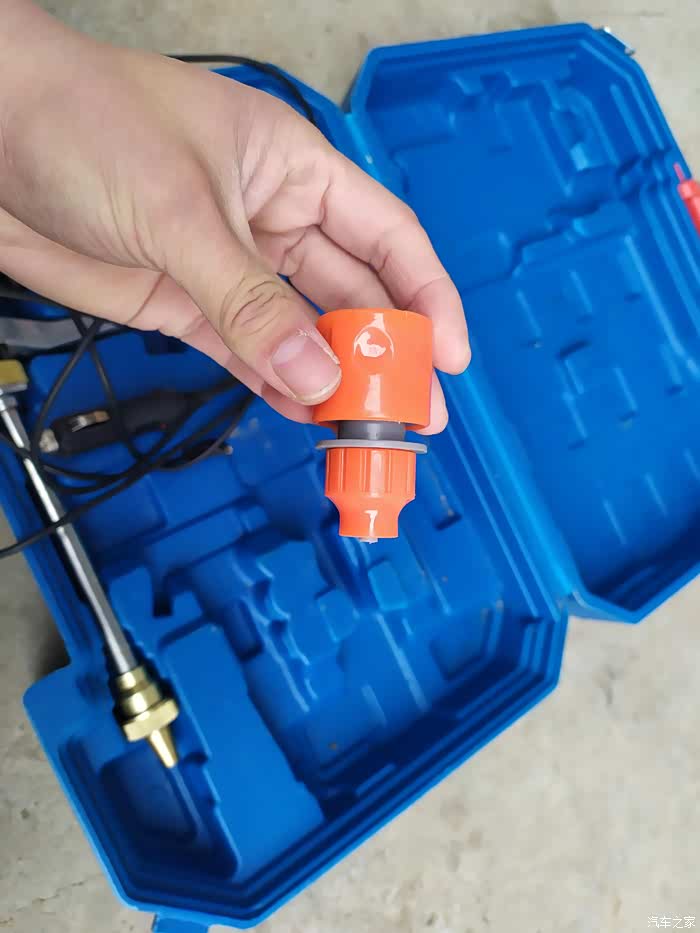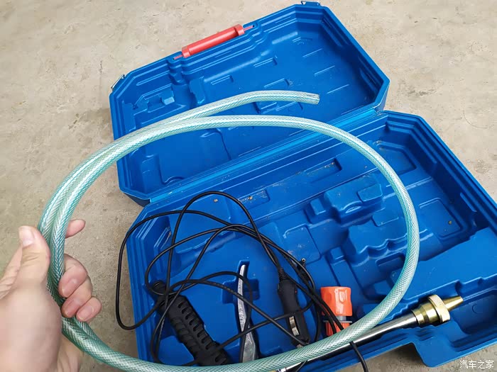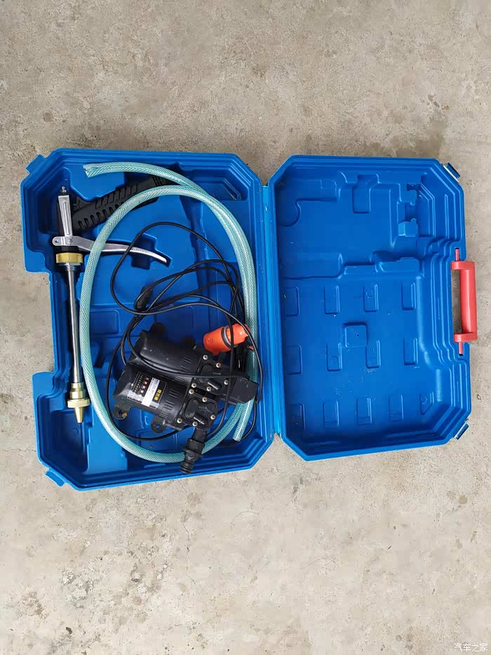 我这件车载洗车机是非常迷你版的,直接使用车载点烟器接口供电,所以不需要使用单独供电就可以洗车机使用原装的塑料箱子收纳,非常实用。洗车工作完毕之后可以直接使用盒子收纳,然后就放到后备箱就可以了,使用起来非常方便。先看看我这件洗车装备的配件吧,一件蓝色的塑料收纳箱,箱子里有洗车机主机、电源线,进水管,出水管,水枪然后配合我的折叠水桶,还有洗车拖把,这样一套完整的洗车装备就够了,剩下的只是需要水了,