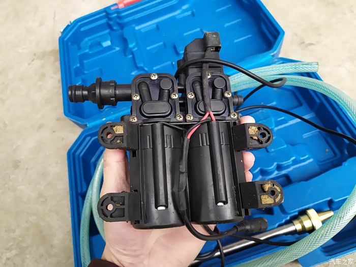 不过值得注意的是洗车的话需要启动车辆,毕竟这是一件比较耗电的装备,需要时用启动车子使用对车载电瓶和电量还是比较好的。虽然这件洗车机体积比较小,但是使用起来还是非常不错的,水压也比较大,洗车完全没有问题,而且比较节约用水,洗车子只需要两桶水就可以了,不过这装备也是有小缺点的,比如洗车机接口位置会有漏水问题,但是总体还是一件不错的装备。
