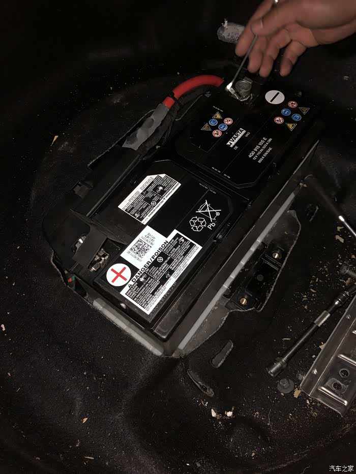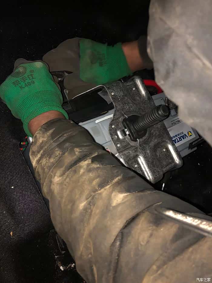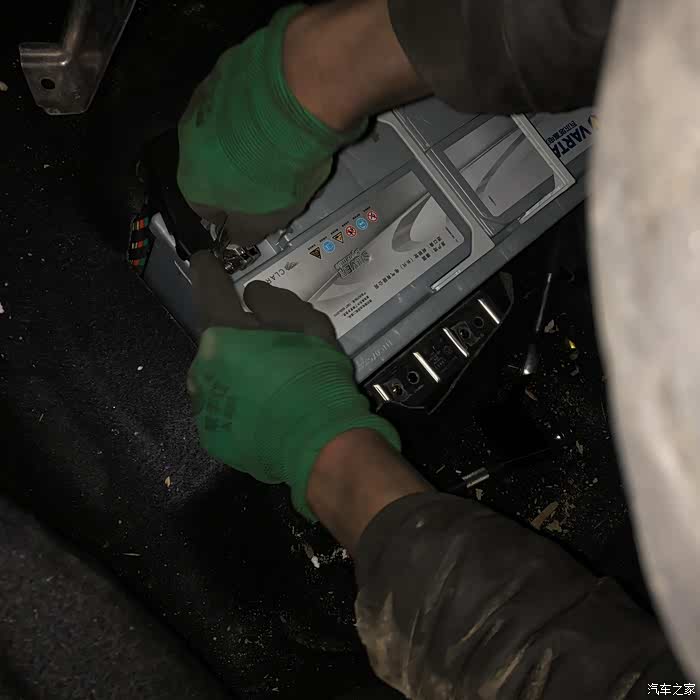 师傅开始着手安新瓦尔塔银标蓄电池,请忽略那些渣渣,安完我肯定要给收拾利落的。