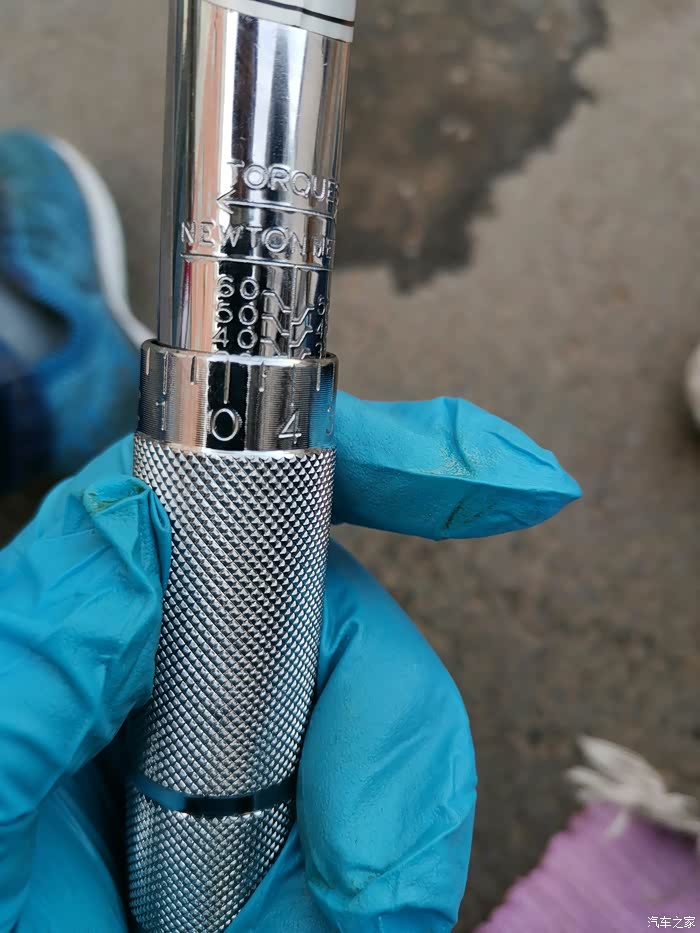 油底螺栓原厂扭矩39±5N.m,扭矩扳手调到39紧固油底螺栓。