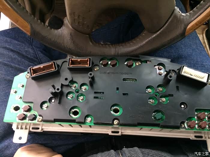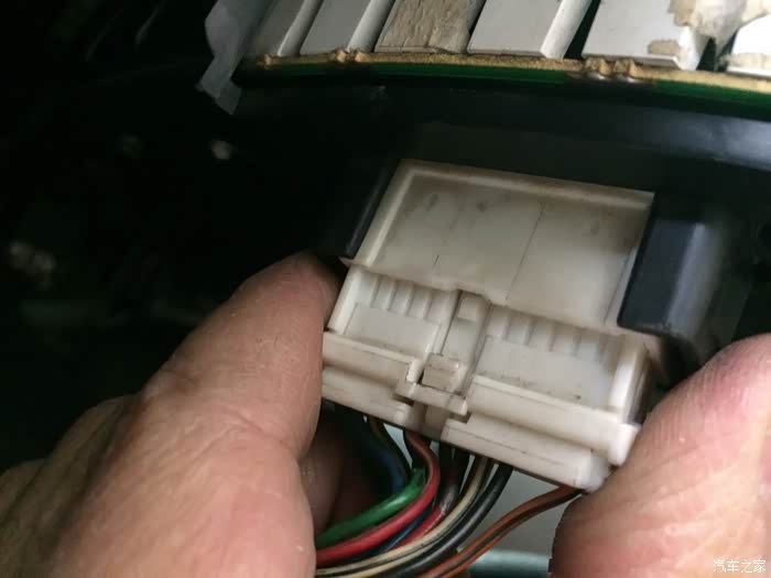 拨除3个线束插头,顶住中间卡扣才能松脱,比较难弄