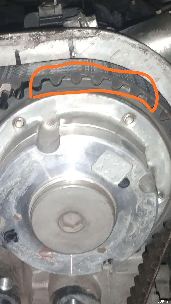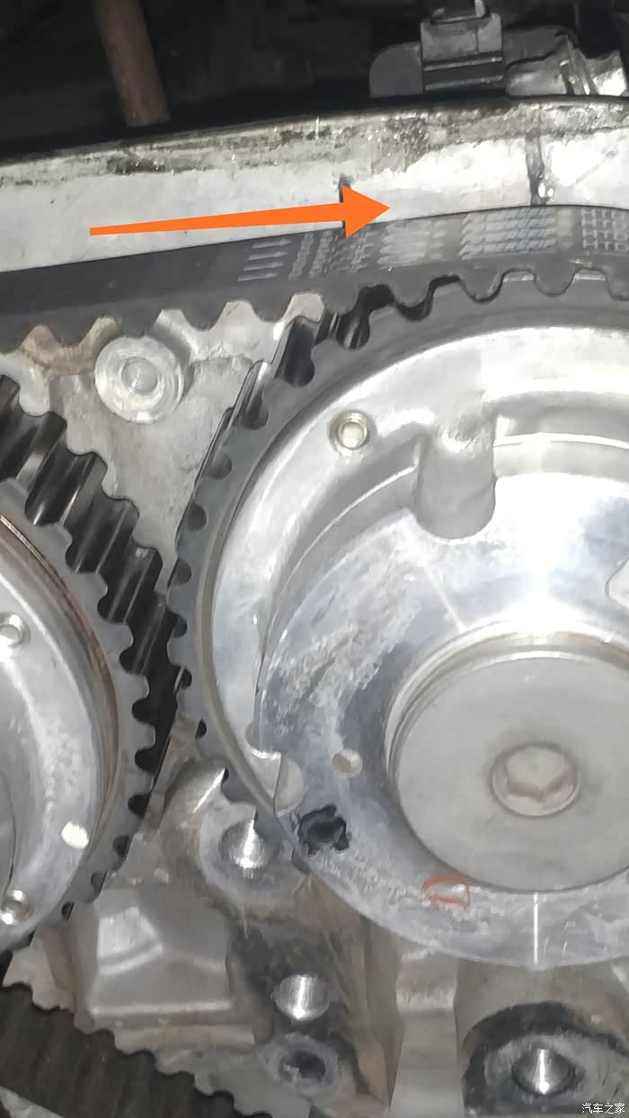 拆掉正时皮带盖子。正面的螺丝数可见。侧面还有一个。