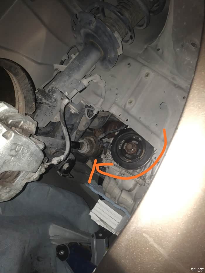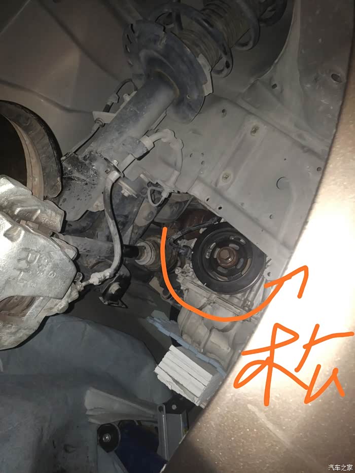 2/顶起车子,卸下右边轮子以及轮毂护板~拆曲轴传感器