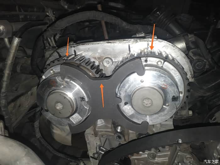 20/工具再装上去~按之前的方法来一遍,如果正时正确的话,工具是可以很轻松的卡进去的。确定OK先装上起动机,装上火花塞,点火试一下。看看怠速,加速等是否正常,有没有故障码。