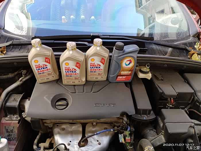 抽油过程略过!!注意下就是拆机率时候注意垫点破布!!会漏油其他还好!!先抽了段时间等5分钟再抽!!然后上装机率倒油!一共抽了3.3升出来倒了3.4升进去。