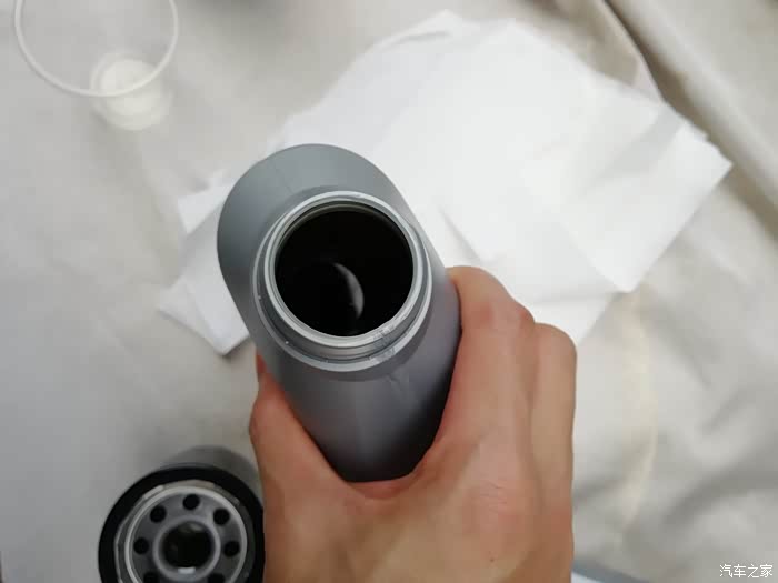 在杯子搞点新油涂上,没有拍拧上滤芯图,忘记了,用手拧到拧不动,再用工具上一小半半圈,手感吧,螺丝用手到位后,用扳手拧到用力气拧不动,躺地板着用不了什么力气,再用手拍紧,卸螺丝也是用小力拍下来看感觉吧