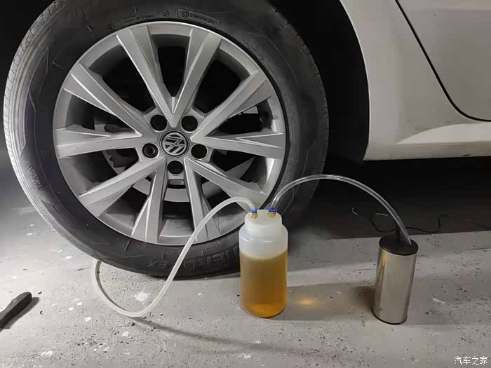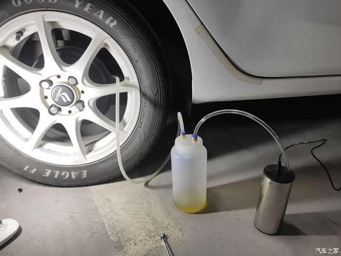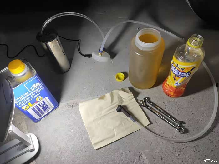 换刹车油,更换刹车油是我第一次,囤货很久的ATE SL.6一直等待更换,想自己换,一直没有很好的工具,正好这段时间外面修车店也没有开门,所以继续某宝看看有没有合适的更换工具,电动真空泵抽刹车油,油壶一套工具都有,简直堪称完美,平地就把刹车油给换了,没有拆轮胎没有举升,非常快捷的速度,这才是最有成就感的,好比第一次自己换机油一样成就满满,因为一直想换刹车油。打开刹车油壶,不断添加新的刹车油进去,下方接好抽油机一直抽,第一次抽久一点,完全抽出壶里旧的刹车油