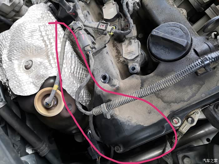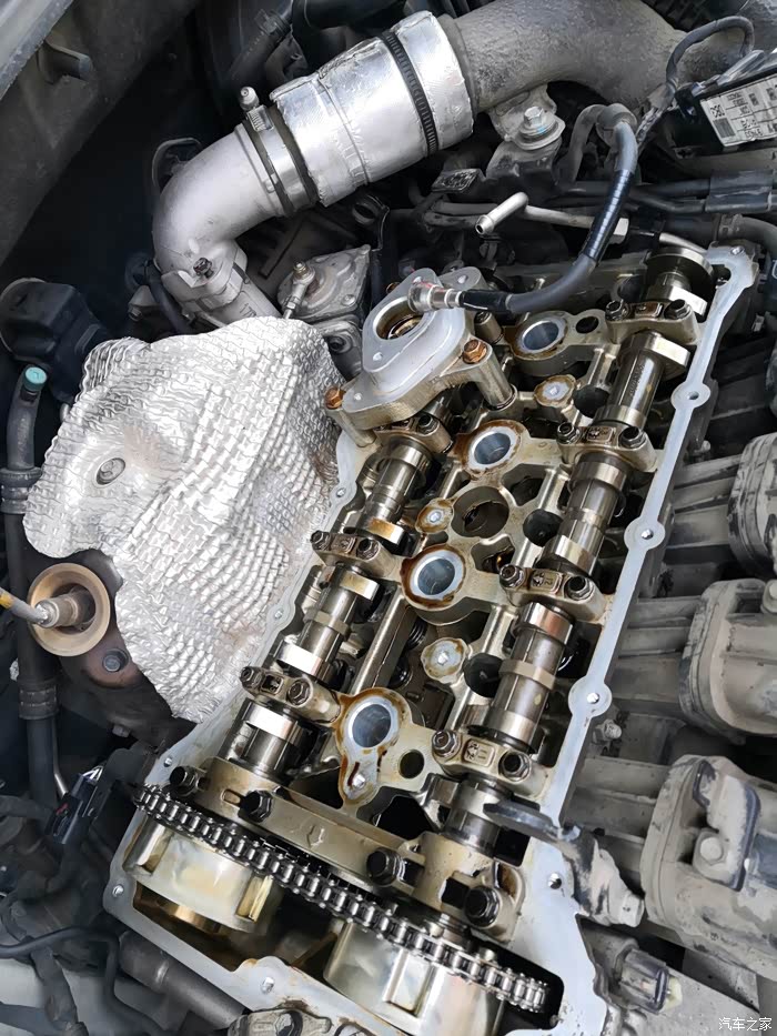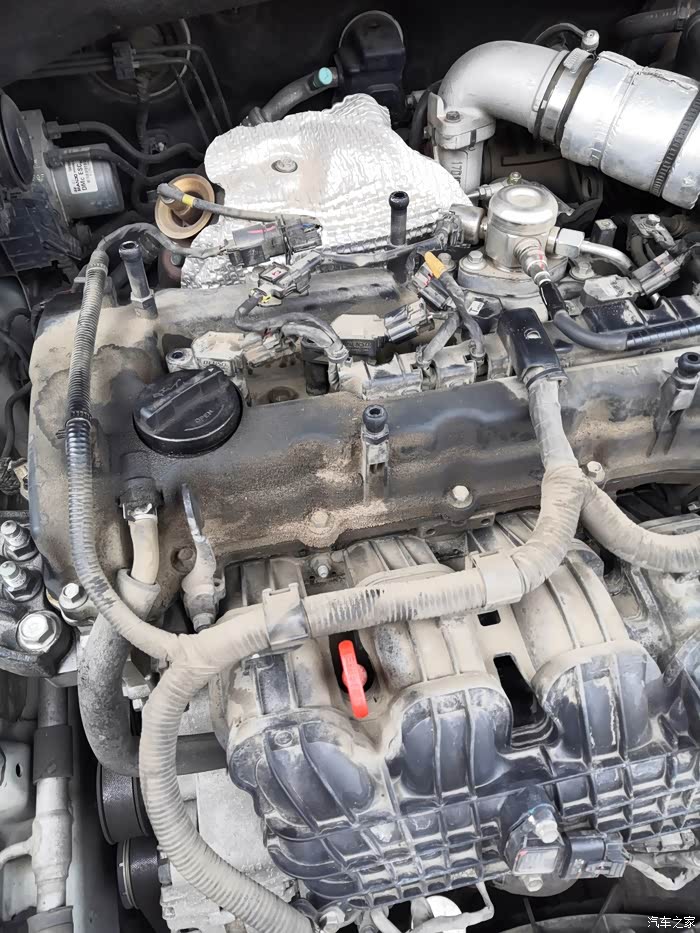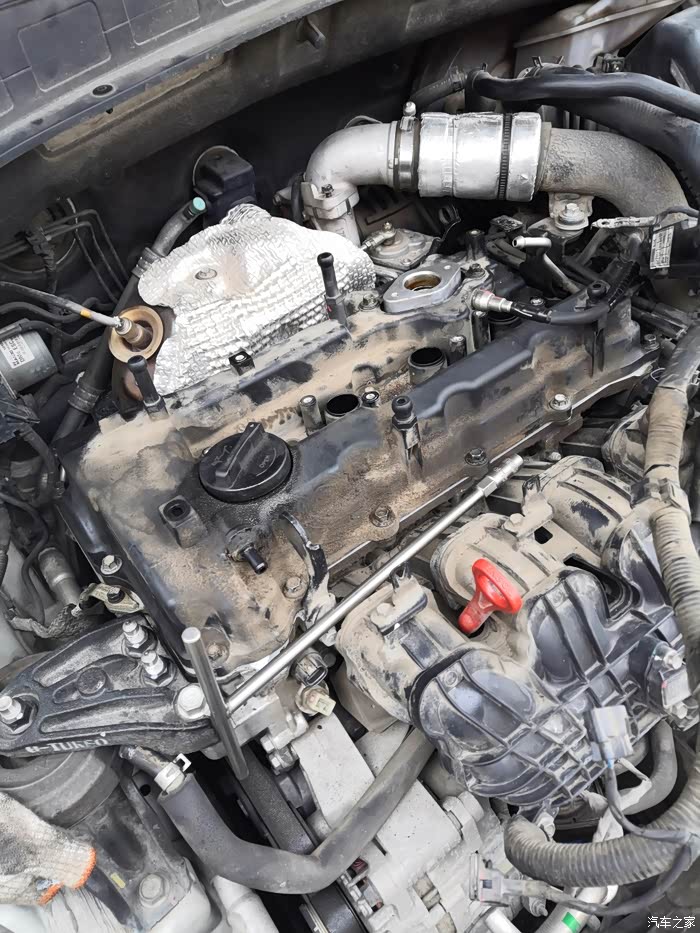 发动机上的油泥,还是比较脏的!