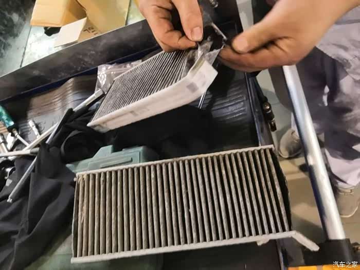 二保,换了空调滤、机油和机滤、灰滤,添加了玻璃水。看了空调滤,确实脏