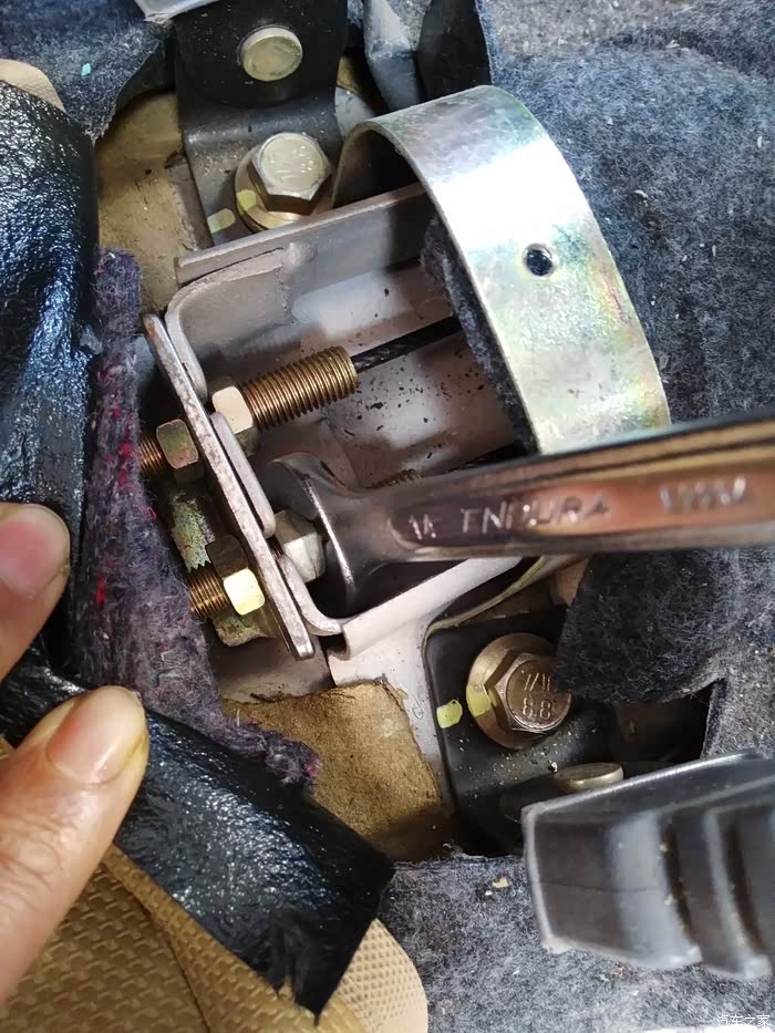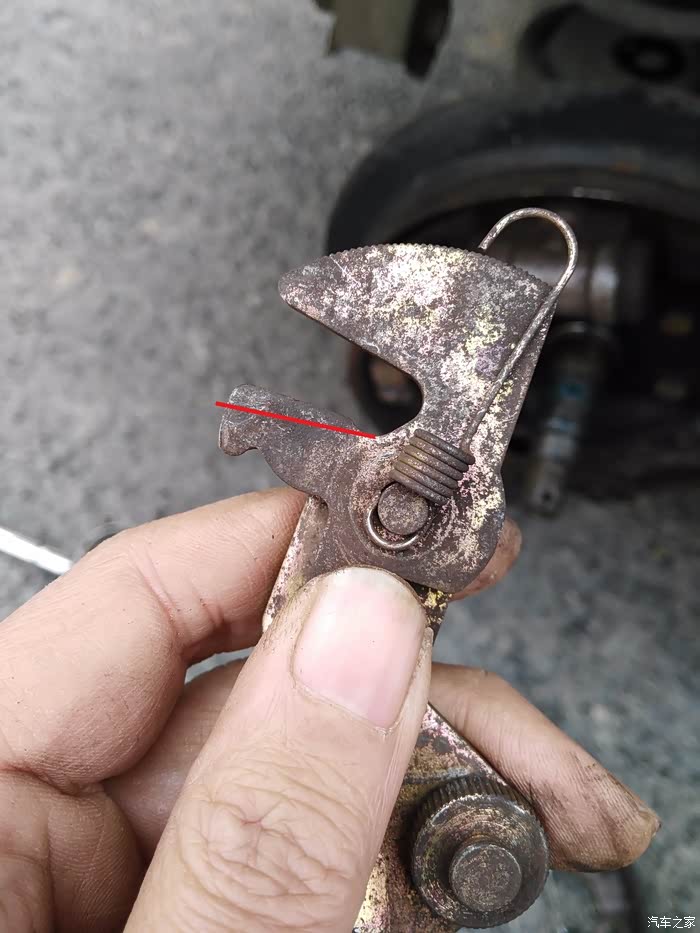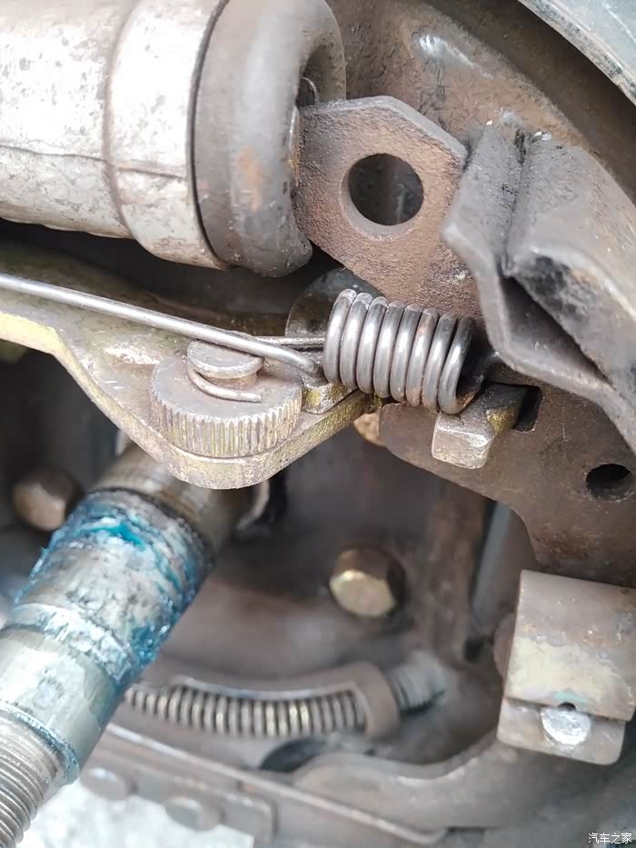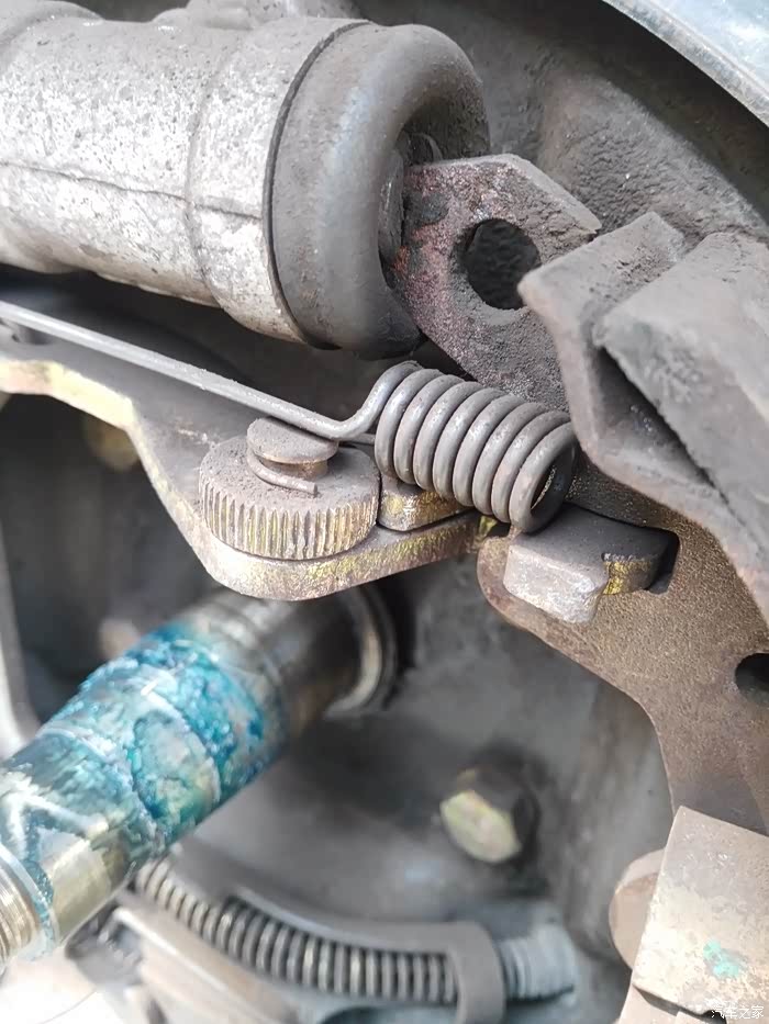 DAY2,手刹与间隙自调机构的配合调整鼓刹的间隙自调机构我就不科普了,总之,前一天之所以白费功夫,就是它在作怪。只要一两脚刹车,它就会自作聪明的把刹车间隙调整到我不满意的程度。所以,还要把间隙自调机构与手刹一起配合调整。