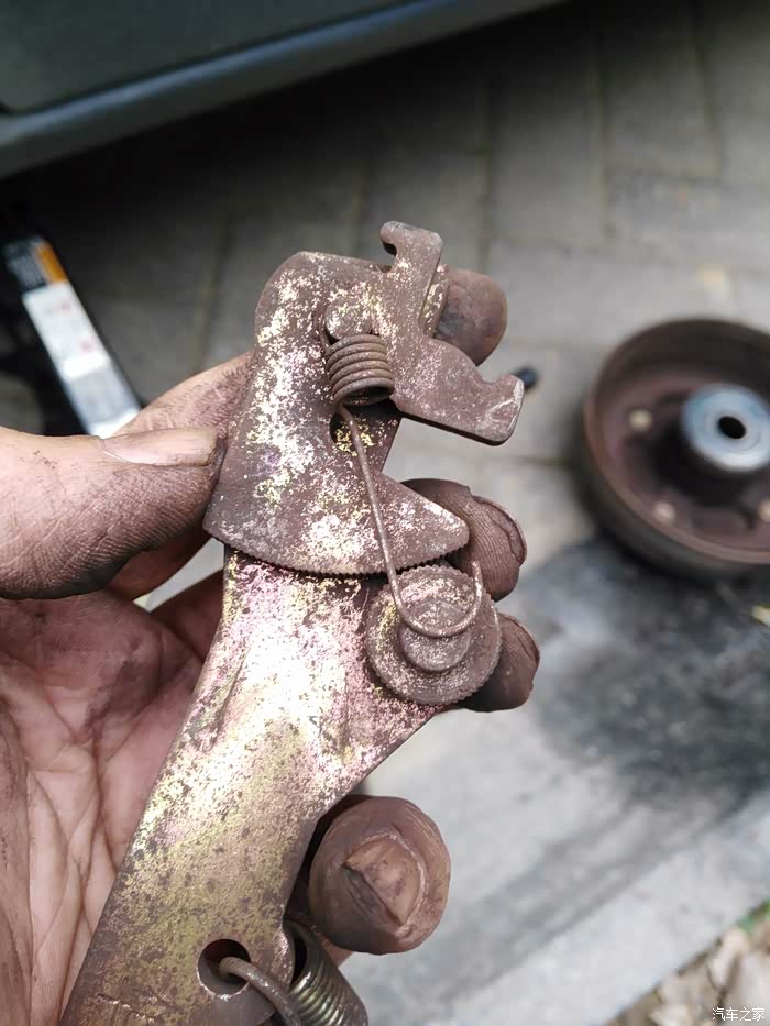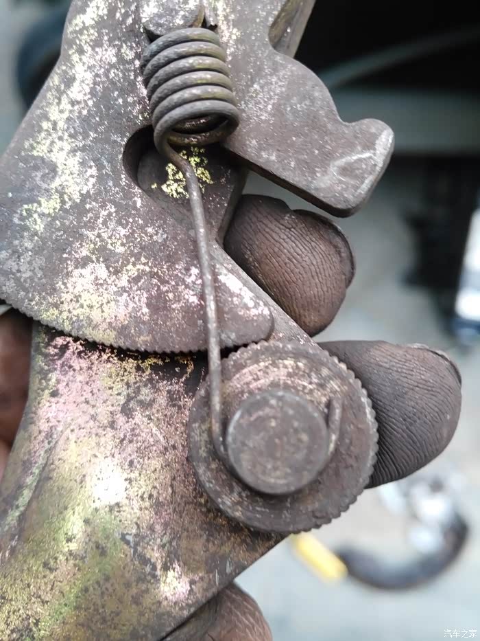 拆开刹车鼓以后,我发现自调机构又把手刹松开的间隙自动补偿上了