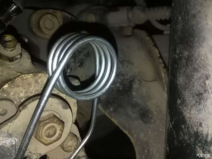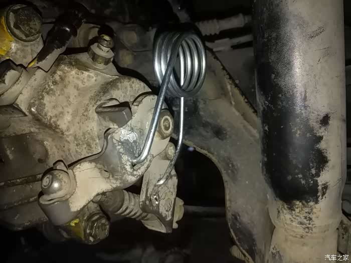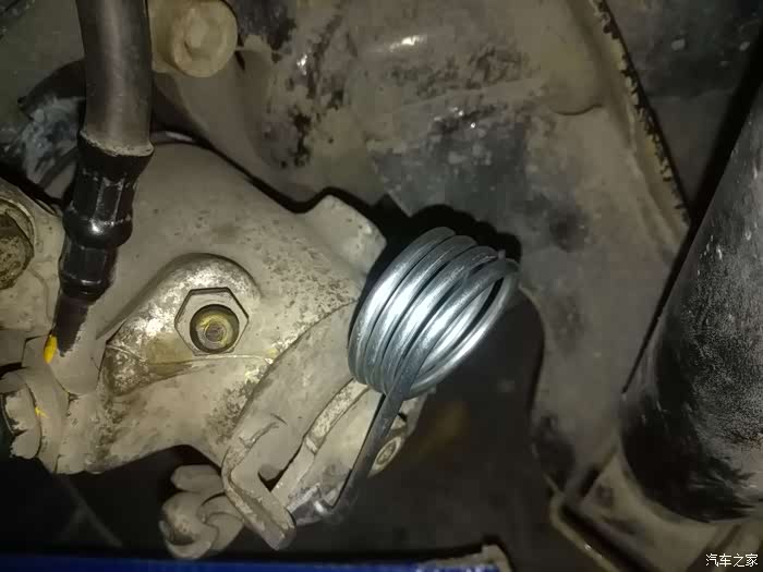 装好后就和TB上的一样了,注意挂孔的位置和螺旋箍。下面的钩再检查一遍有没有压到手刹线的弹簧。