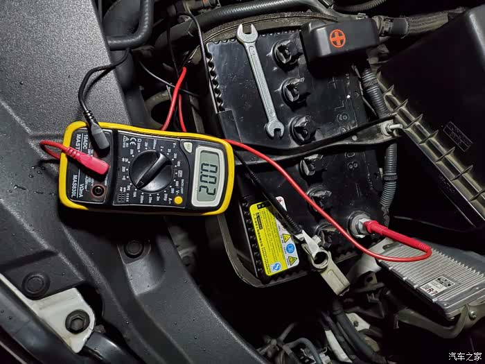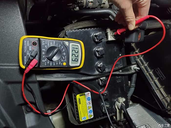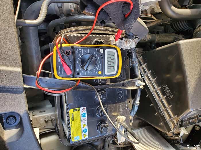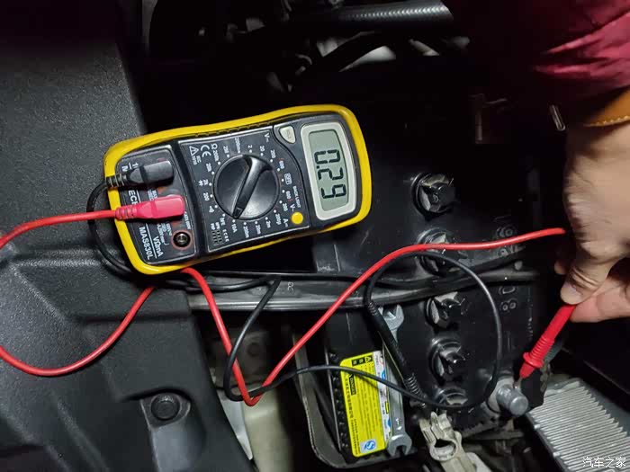拆之前测试的电压,这是两天没有发动了,室外温度0度左右