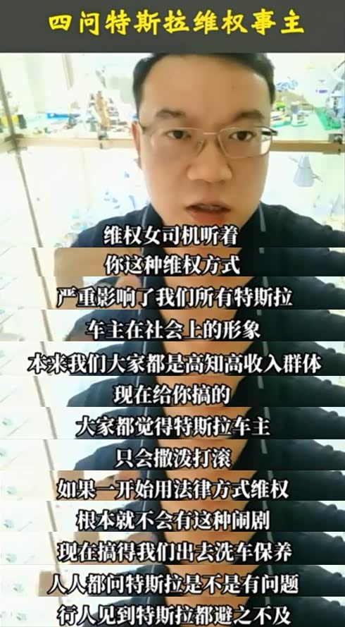维权女车主维权,即使存在不合理的地方,也已经付出了行拘五日的处罚,并且此事也已经和特斯拉协商处理当中,而此时一位特斯拉车主跳了出来,起诉另一位维权车主,这是什么脑回路?对此,有不少网友调侃道“这算不算蹭热度?”、“想出名想疯了”、“特斯拉车辆存争议,不去起诉特斯拉,反而起诉维权车主”、“该律师吹捧特斯拉,损害了律师的形象,我现在的律所外面经常有人讥讽我,朋友们也开我的玩笑,我现在要告宋律师,要求他公开赔礼道歉,挽回律师的公众形象!”对于此事,维权女车主和特斯拉方面,还没有做出回应以及相关表态,对此,我们也会保持关注。