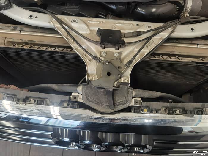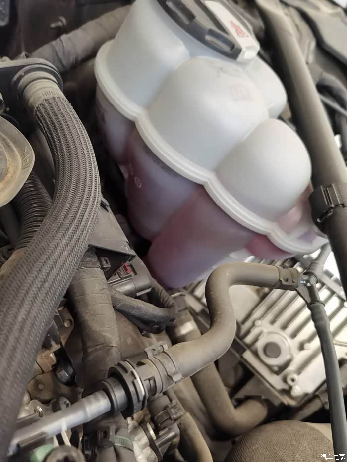 6、用手触摸水箱下水管,发现上下水管温度差较大,怀疑节温器无法打开造成冷却液无法进行大循环,从而仪表报警;