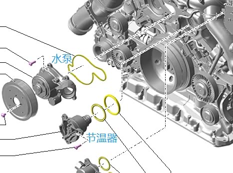 9、水泵是有发动机控制单元和机械式水泵切换阀进行控制的,有可能是水泵机械卡死或者节温器机械卡死导致冷却液不循环造成仪表报警;
