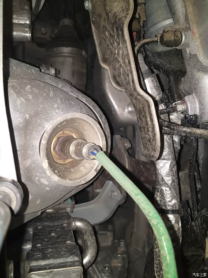 首先把氧传感器插头拔掉,使用专用工具拆除氧传感器