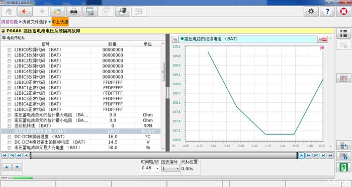 测量结果如下:对比测量试驾车蓄电池四组电压均为0V、绝缘电阻均为1000兆欧,根据数据对比可以判定蓄电池组1、3内部故障,故障确定。更换高压蓄电池总成,执行更换蓄电池组更换程序,启动车辆查看动力电池数据流高压电路绝缘电阻保持在1000千欧,在各种模式下试车确认故障排除。首先采用排除手法,结合电子维修手册DTC诊断索引,查看HDS数据变化进行判断,使用兆欧表进行绝缘测量,整个过程中,会涉及到高压部件/电缆的拆装,一定要做好高压防护,和对拆装的部件进行绝缘包扎;
