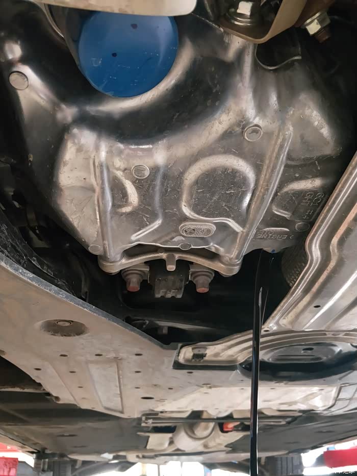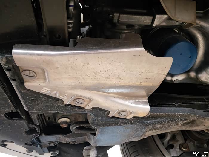 ,支撑车辆,把机油滤清器挡板拆掉,下面就开始排放机油和拆掉机油滤清器了,相反顺序安装机油堵和机油滤清器,垫片一定要换哟,属于一次性的东西,把车降落下来加注机油,打着车着车后熄火等待30秒以上观察机油尺,看机油是否在正常范围。