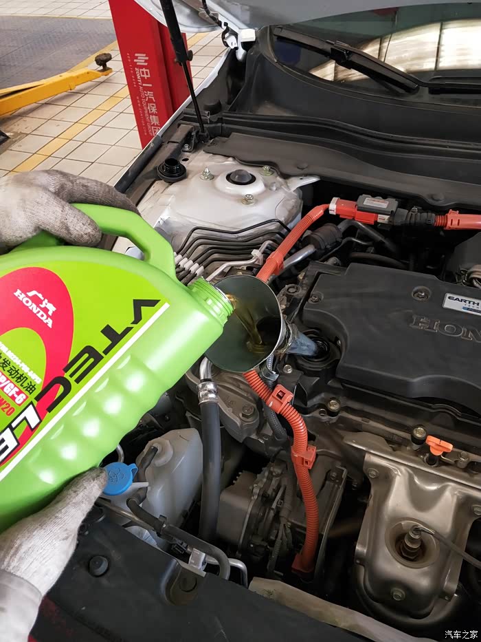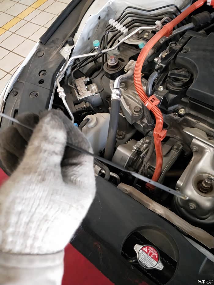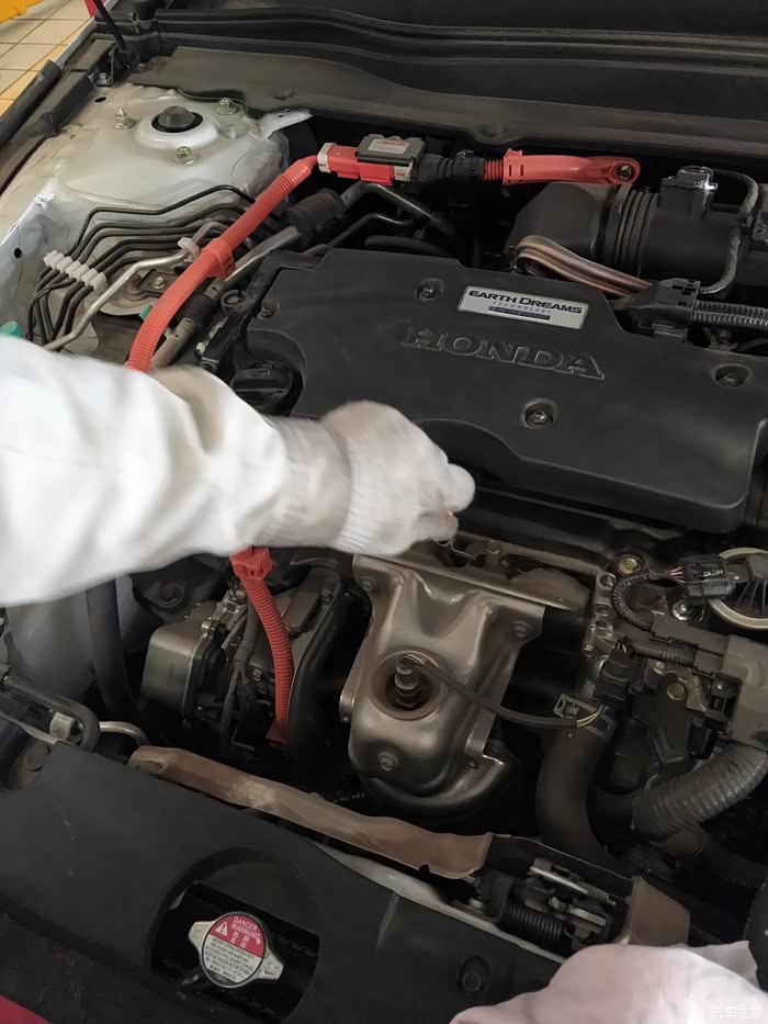 到了三个月时间该第一次保养了,今天来给雅阁做个保养,首先打开机油加注口盖,打开机盖这个一般就不用说了