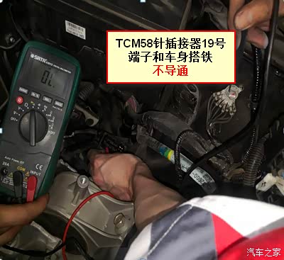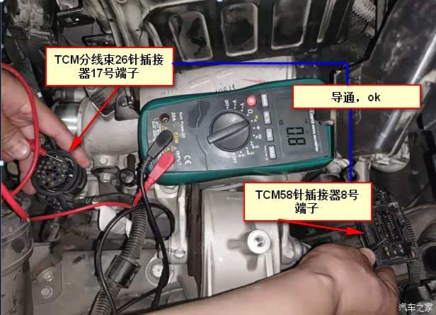 4.排查过程可以判断TCM58针插加器和TCM分线束之间的相关变速箱油压传感器/开关“A”电路线路没有出现断路