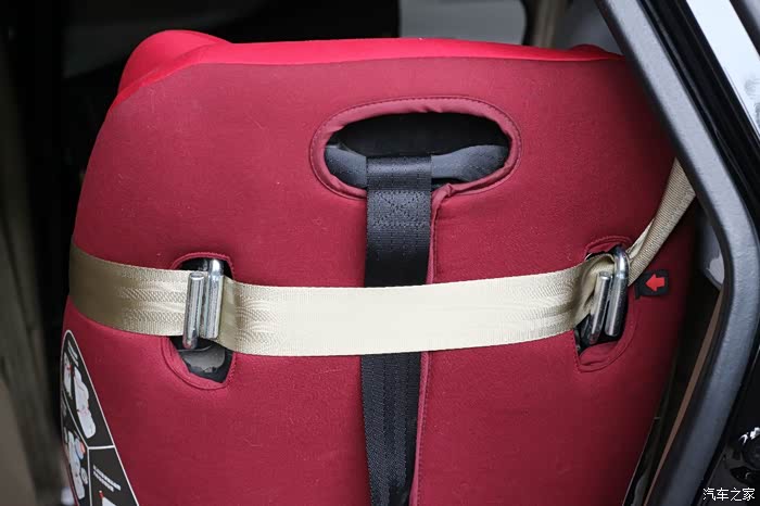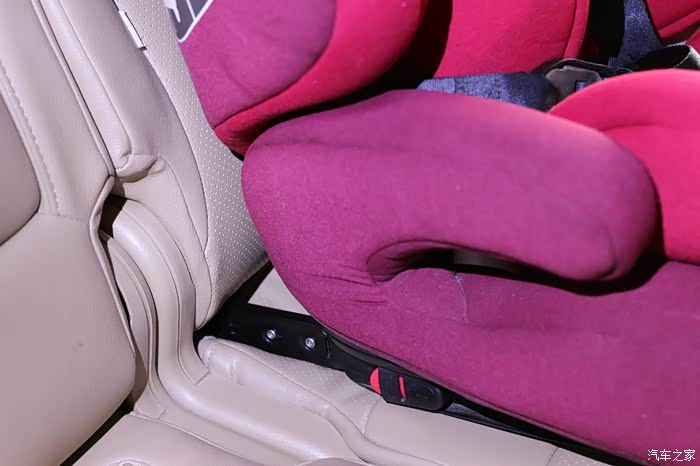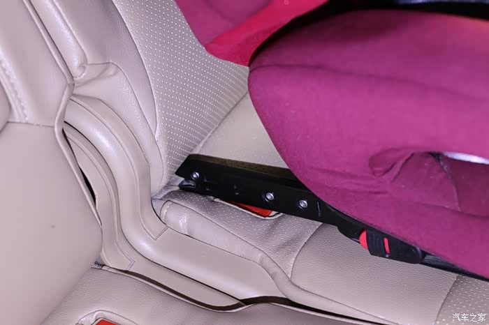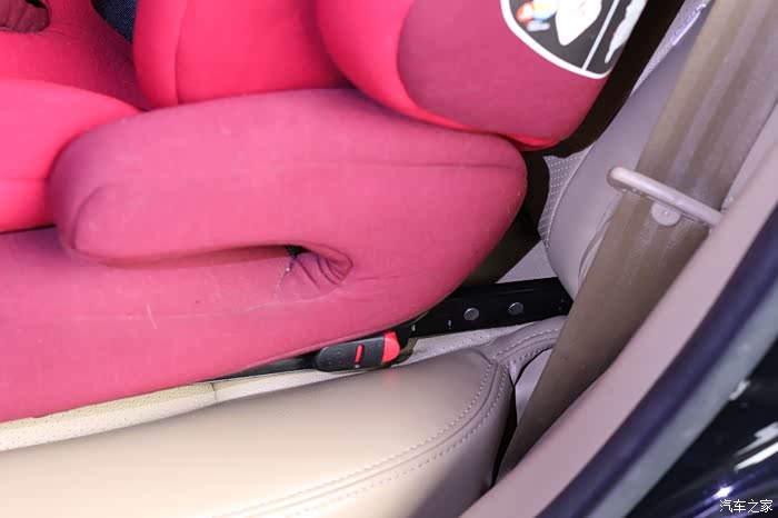 座位上支持ISOFIX安全设施的特写,一般在后座上明显位置,宝爸妈们可以回去仔细找找。
