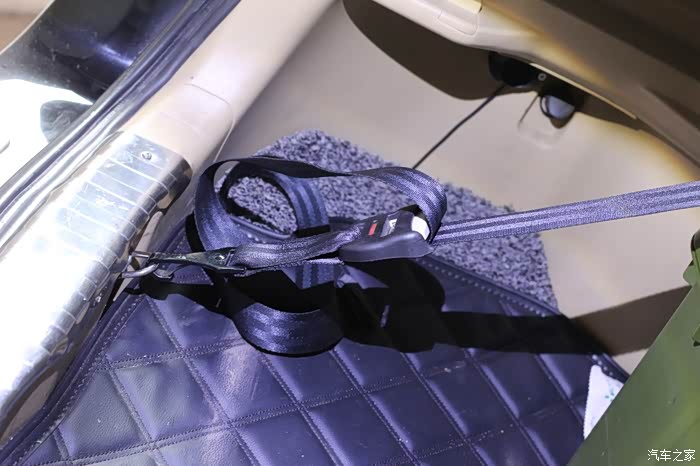 像这样把安全带穿过去,然后固定好安全座椅,这种安全带安装方式非常简单。