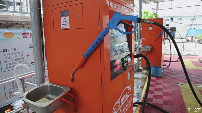 这两年突然兴起了很多这种24小时的自助洗车点。这种洗车机器其实使用很简单,只需要拿出手机,打开微信,扫一下下面的二维码,点击关注公众号以后,在按里面提示充值就可以使用了