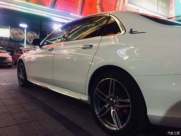 在4s门口拍的,风火轮的轮毂,我个人特别不喜欢,虽然说以前19的轮毂也一般般,但是至少人家是19寸啊。完全不配e的气质,我就是带着这轮毂跑了一个多月。。