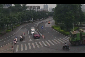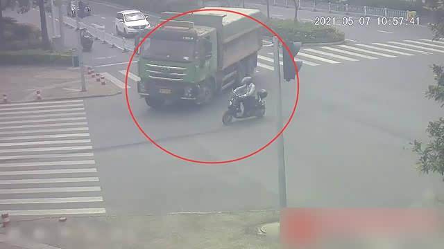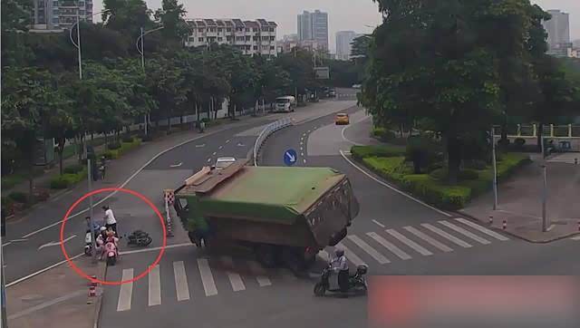 近日,在南宁市高新区发生惊险一幕:一辆大货车通过路口时,因避让一辆转弯的黑色电动车导致侧翻,压扁另一辆电动车,所幸白衣男车手及时跑开,躲过一劫。5月18日,南宁交警部门找到肇事的电动车车手。