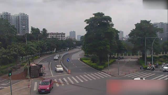 5月7日10时57分,在江北大道相思湖西路路口,一辆大货车由东往西通过路口时,为避让一辆电动车方向发生偏移,随时有侧翻风险,现场情况十分危险。大货车为避让电动车,行驶方向发生偏移。