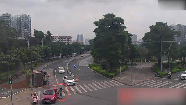 当时在路口等候通行的有三辆电动车,距离大货车最近的白衣男车手迅速弃车跑往人行道;白色电动车男车手加速逃离危险区域;粉色电动车的女车主明显懵了一下,差点和孩子一起摔下车。白衣男车手迅速弃车逃离,白色电动车和粉色电动车也纷纷离开危险区域。