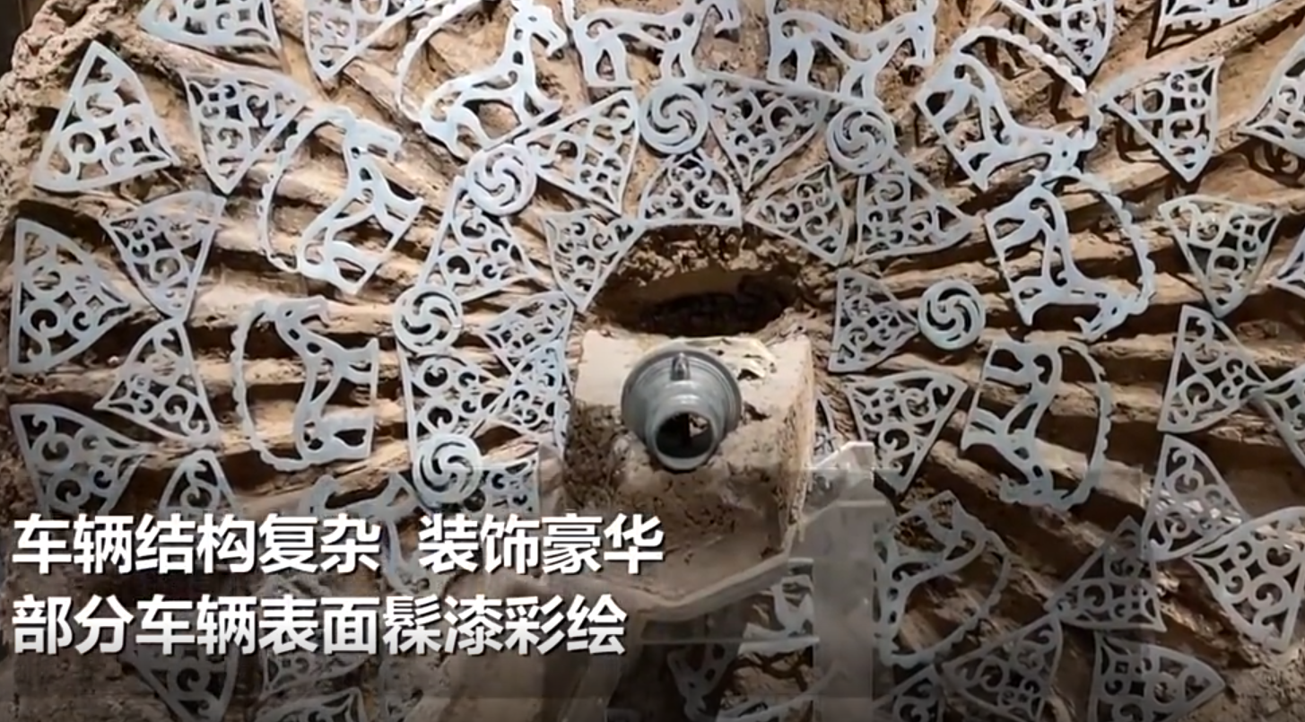 马家塬西戎墓葬是甘肃首次大规模正式考古发掘的战国西戎文化墓地,首次发现了保存完好、外表华丽的战国车乘,车辆结构复杂、装饰豪华,由金、银、贴金银铁、铜、锡和各类质地的珠子装饰,部分车辆表面髹漆彩绘。
