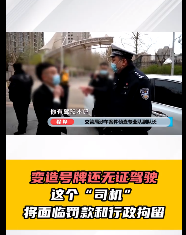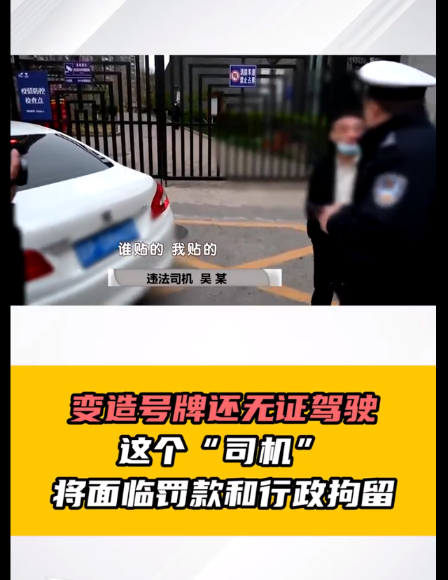 实际上经过警方的前期工作,吴某除了变造机动车号牌以外还违反了一项规定,那就是无证驾驶。