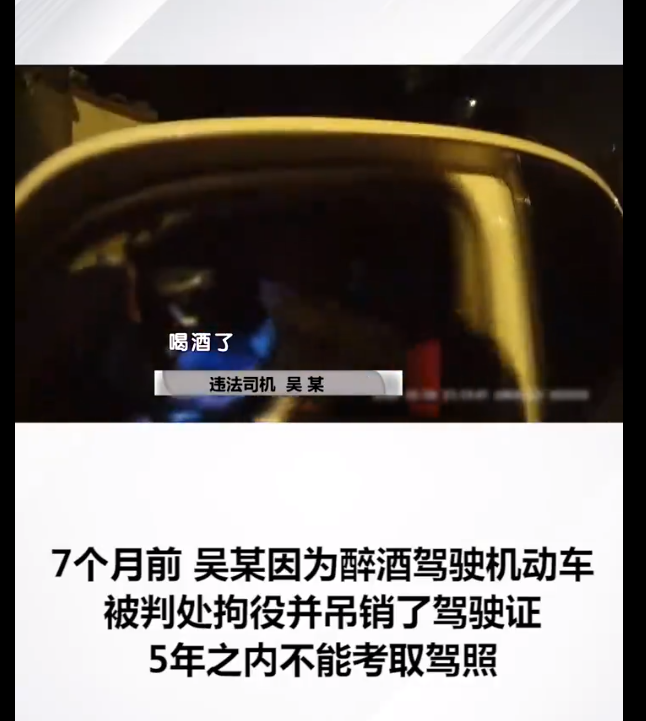 面对民警吴某说自己的驾驶证忘带了,实际上吴某在7个月前,曾因为醉酒驾驶机动车,被判处拘役并吊销了驾驶证,5年之内不能考取驾照。