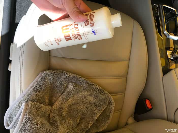 第七步:皮制区域护理,座椅及皮质区域使用专用的中性护理剂,带有清洁功能